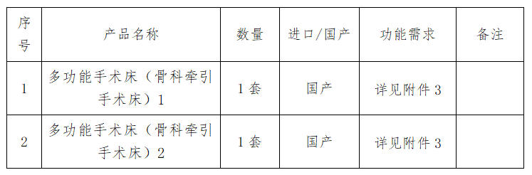 (二)项目内容:采购多功能手术床(骨科牵引手术床)2套