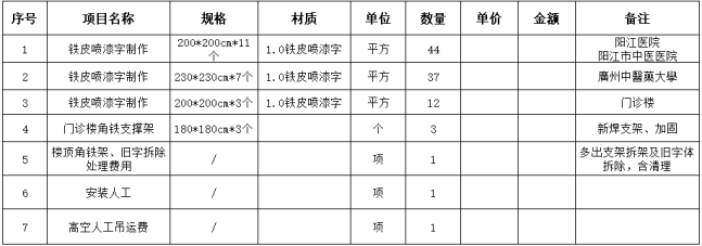 (一)项目名称:阳江市中医医院楼顶大字制作项目