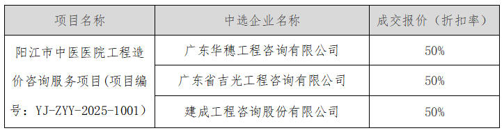 阳江市中医医院工程造价咨询服务项目遴选结果公示