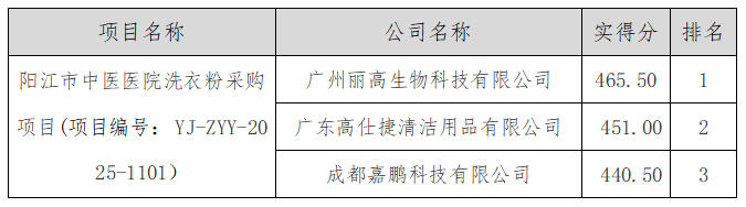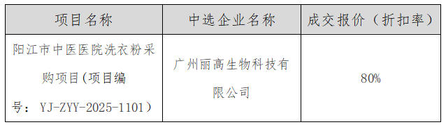 阳江市中医医院洗衣粉采购项目遴选结果公示