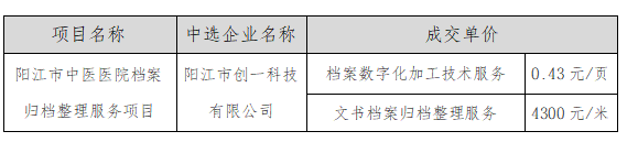 阳江市中医医院档案归档整理服务项目采购结果公示